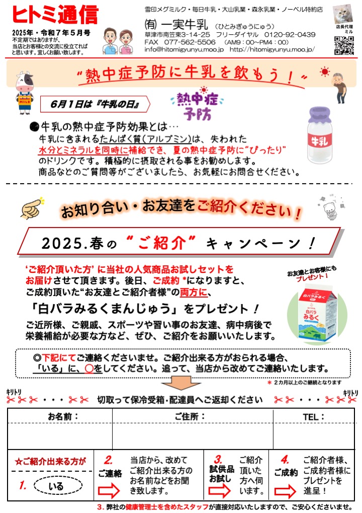 【健康管理士がいる宅配牛乳店 草津市・一実(ひとみ)牛乳 ホームページ】