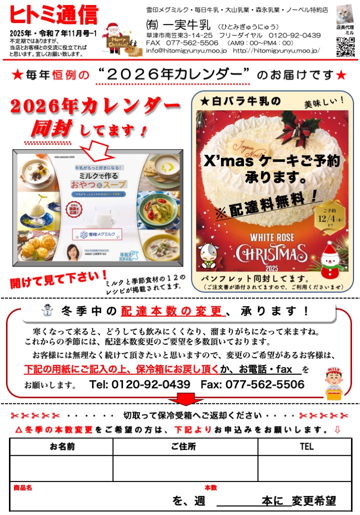 【健康管理士がいる宅配牛乳店 草津市・一実(ひとみ)牛乳 ホームページ】